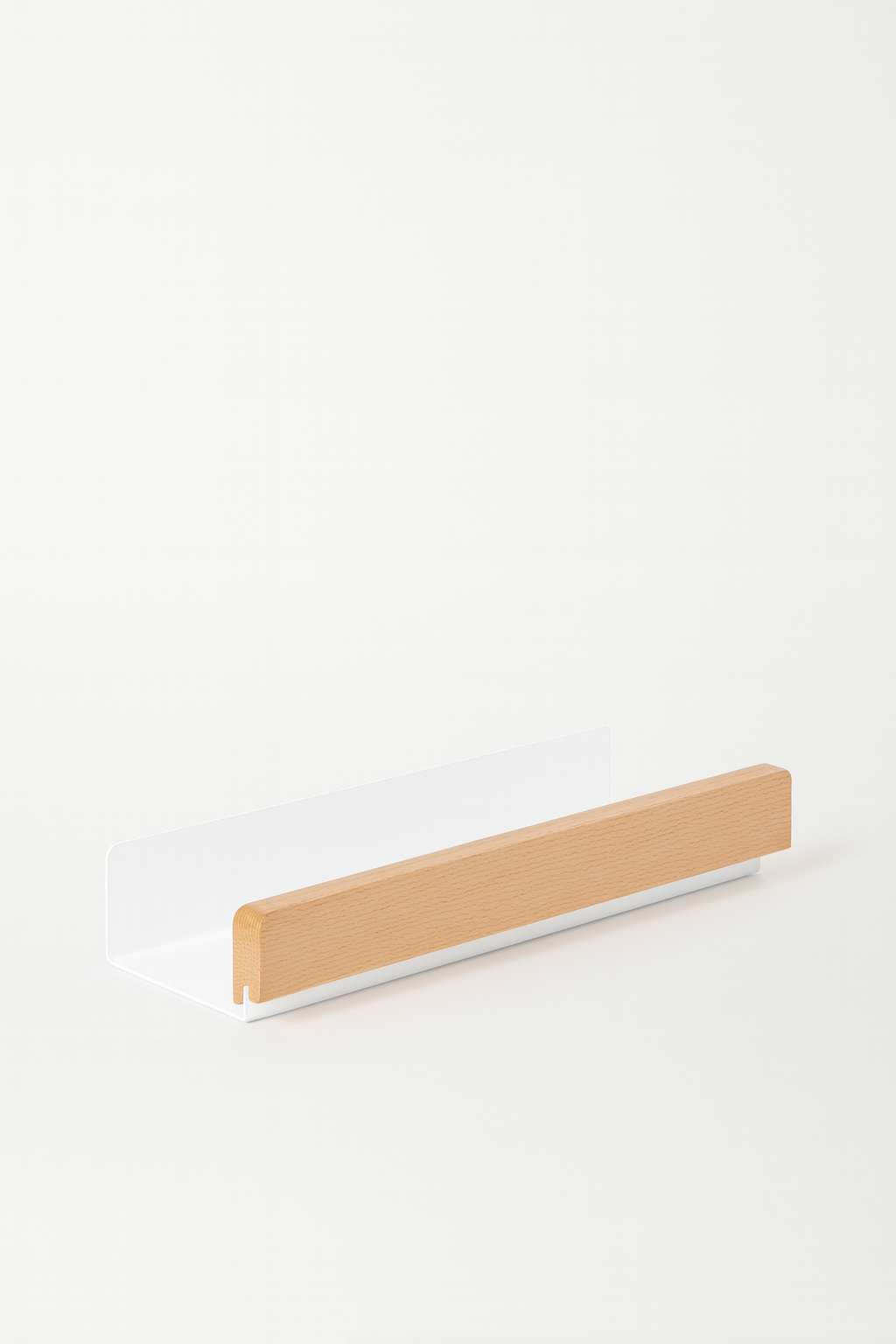 Stworzona z myślą o uporządkowanej przestrzeni, idealnie sprawdzi się w łazience, kuchni lub przy toaletce. Jej smukły profil nie zabiera cennego miejsca, a subtelna bariera z drewna chroni przedmioty przed zsunięciem. Półka pomieści szczoteczki, pasty, flakoniki, kremy i inne kosmetyki, zapewniając łatwy dostęp i wizualny porządek. Montowana do ściany, stanowi eleganckie rozwiązanie do przechowywania w ograniczonych przestrzeniach.