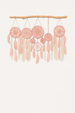 Każdy element wyróżnia się subtelną plecionką z bawełnianego sznurka i lekkimi piórami, zawieszonymi na solidnych metalowych obręczach.