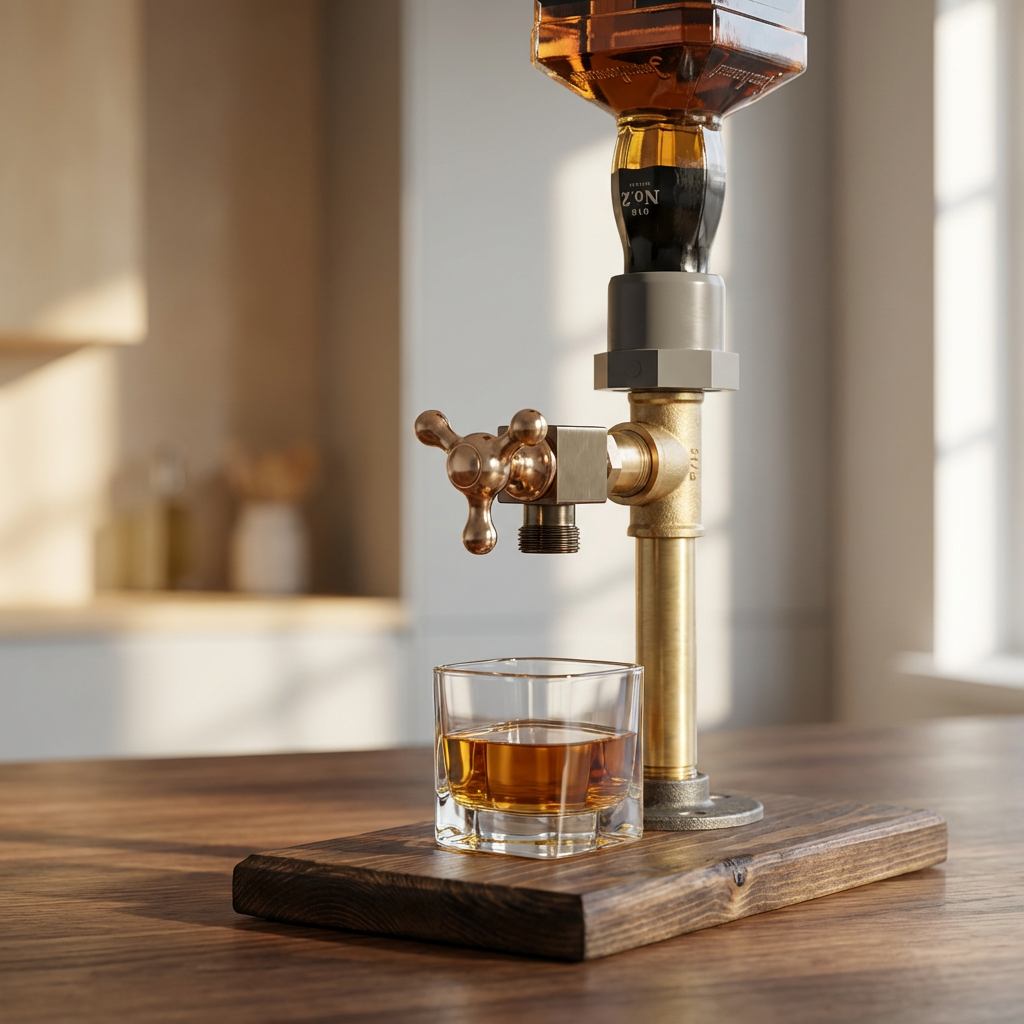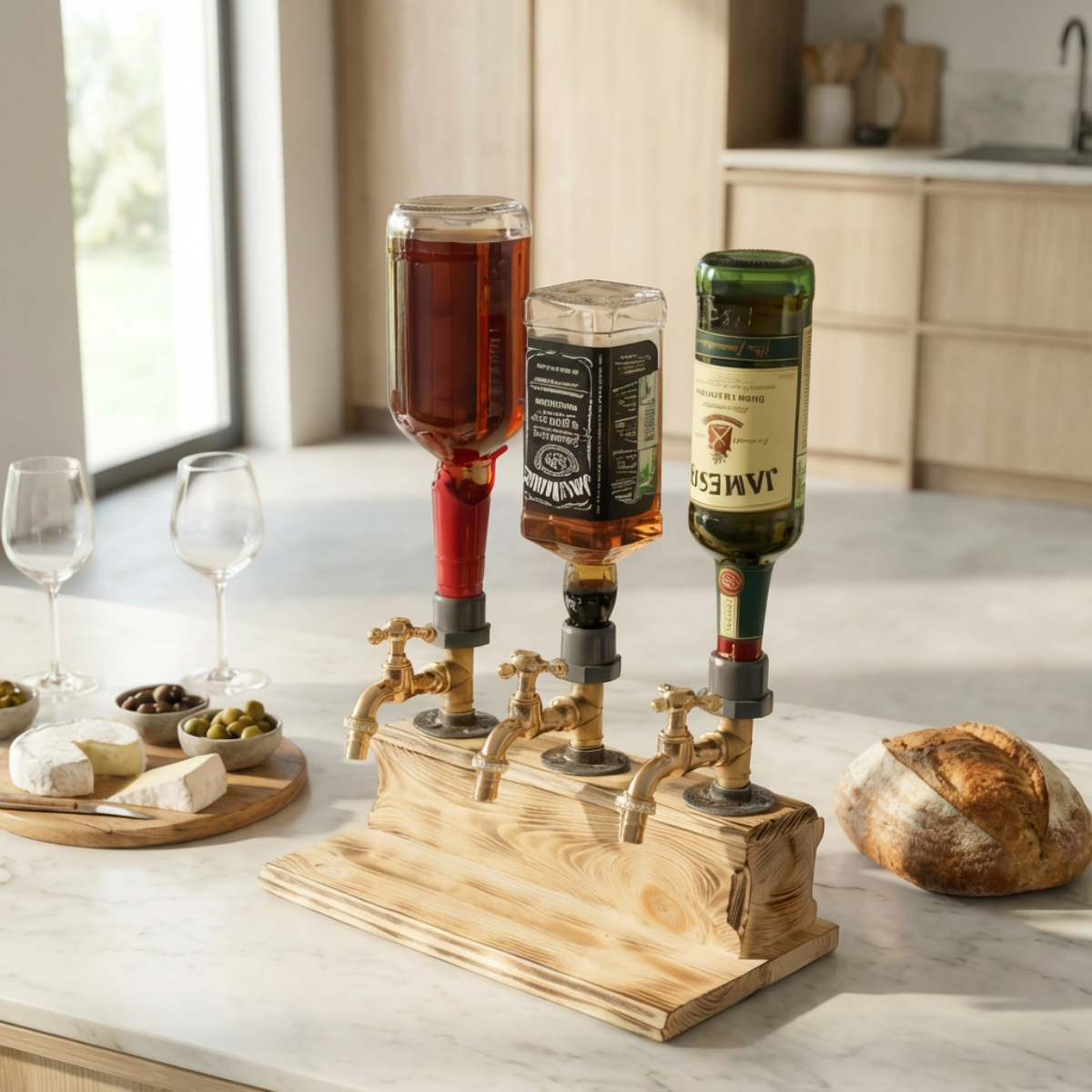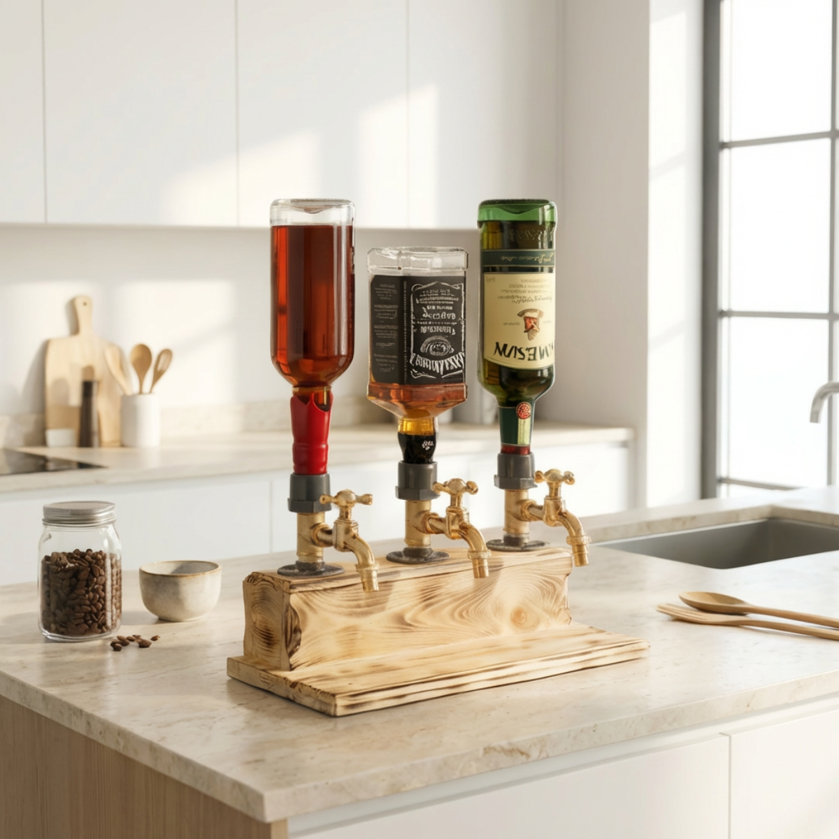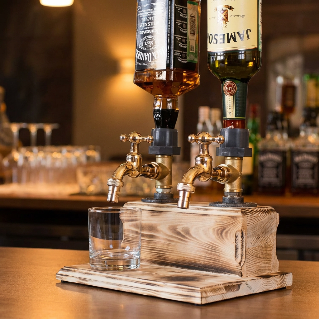 Wykonany z wysokiej jakości drewna, z mosiężnymi kranami, nie tylko wygląda wyjątkowo, ale również umożliwia łatwe i estetyczne serwowanie whisky, win, likierów lub napojów bezalkoholowych.