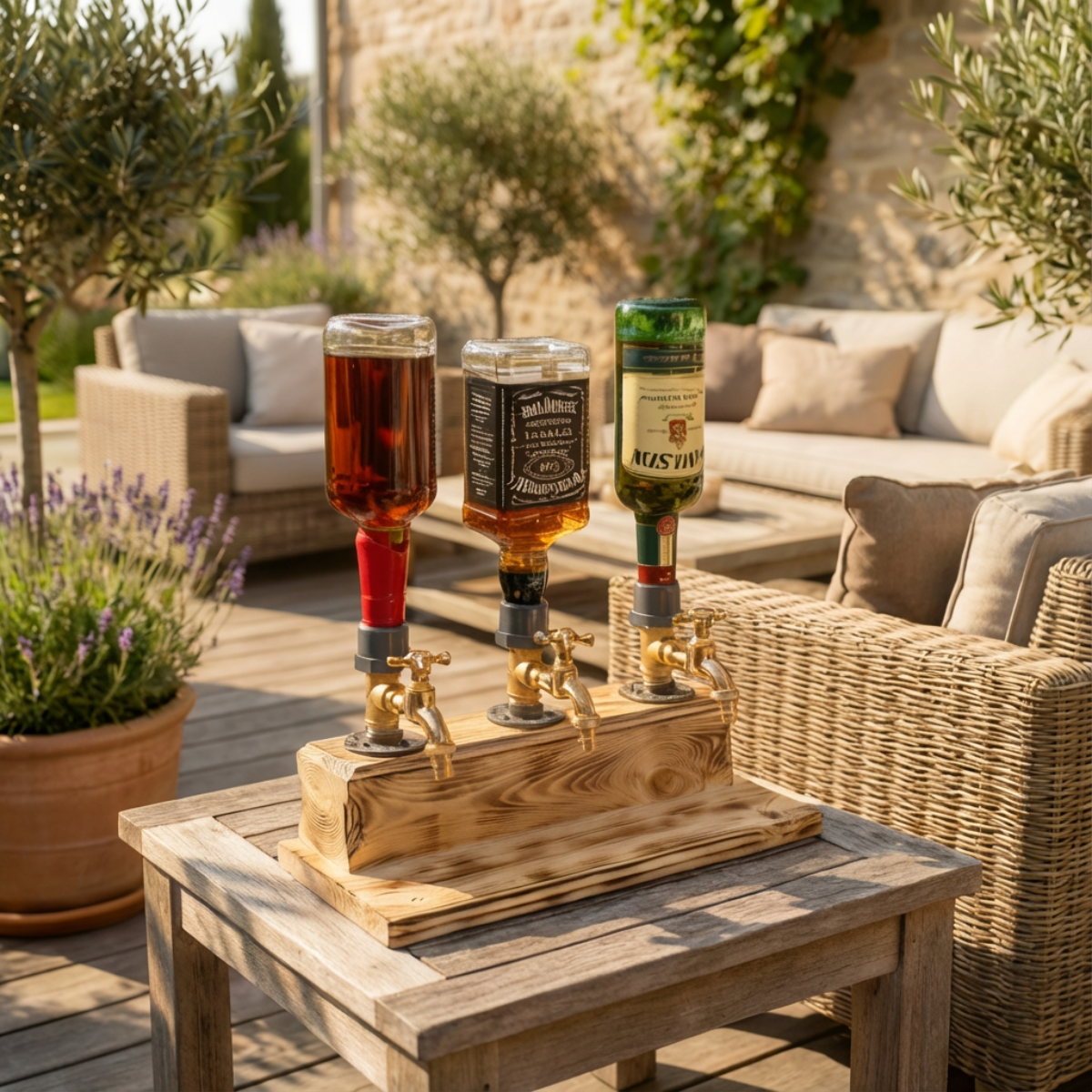 Ten elegancki drewniany dyspenser z kranikami podniesie poziom każdej domowej imprezy lub wieczoru z przyjaciółmi.