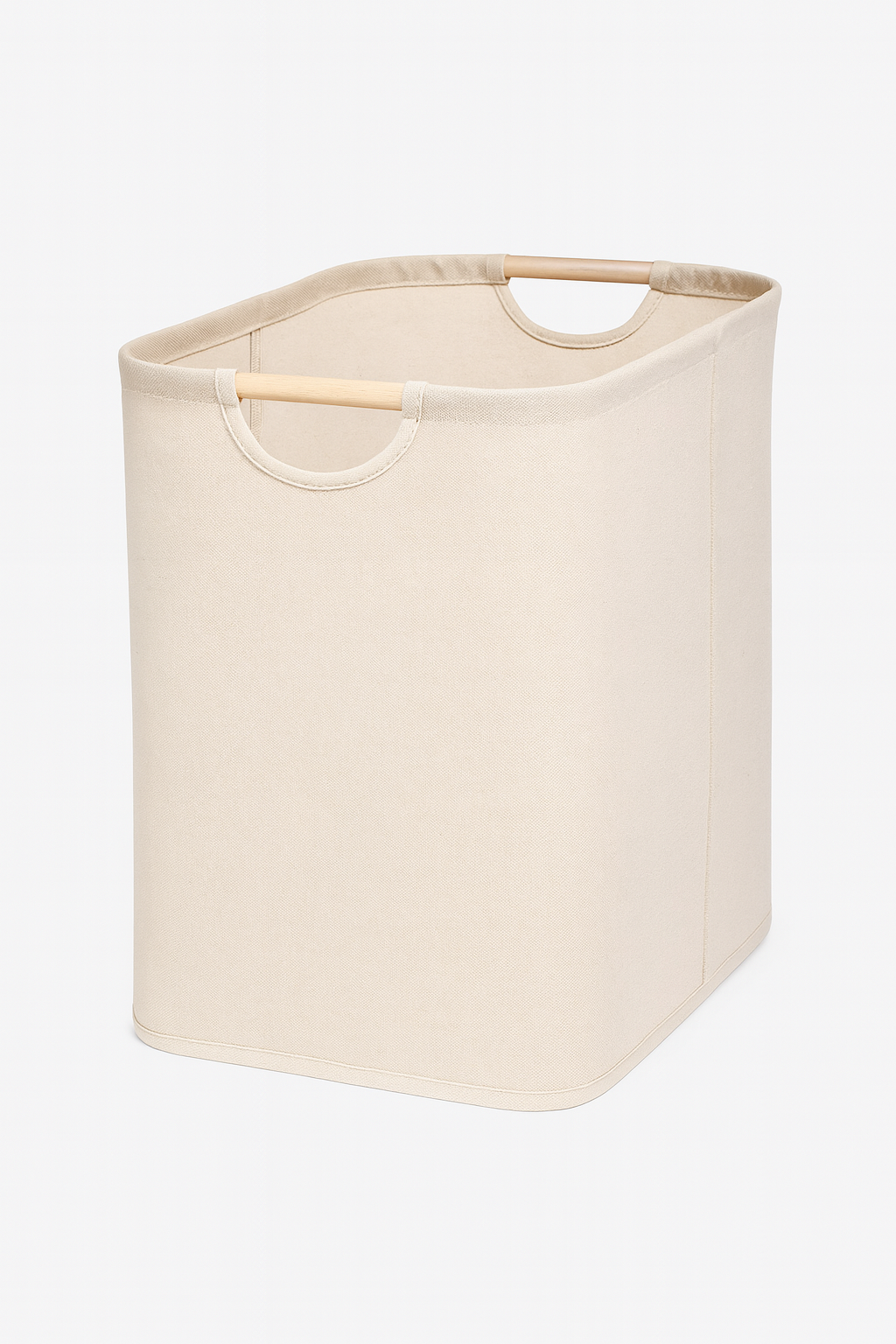 Wykonany z naturalnej tkaniny lniano-bawełnianej, wnosi do wnętrza atmosferę spokoju i ładu. Dzięki lekkiej konstrukcji i wzmocnionemu wnętrzu kosz zachowuje swój kształt, a gdy nie jest używany – można go złożyć i schować.