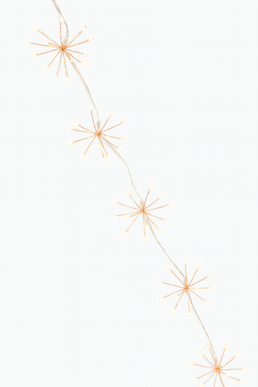 Starburra to dekoracyjna girlanda świetlna z delikatnymi, miedzianymi klastrami przypominającymi miniaturowe fajerwerki.
