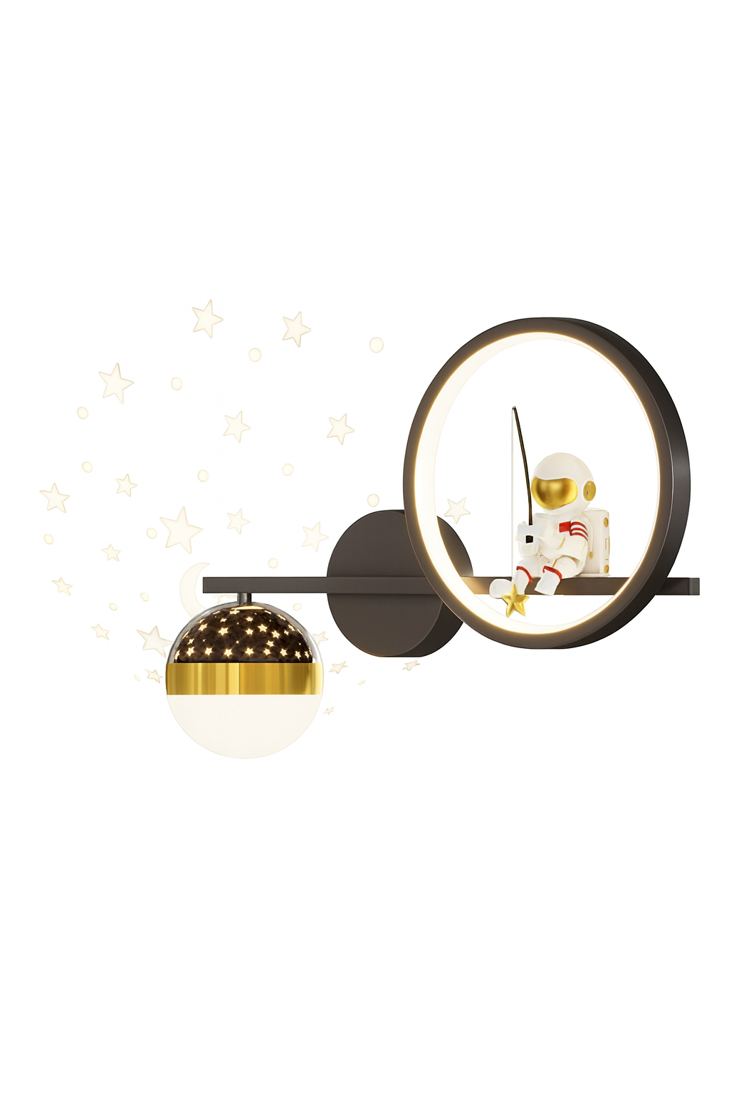 Wykonana z trwałych, bezpiecznych materiałów, posiada zaokrąglone krawędzie i delikatny, rozproszony blask. Kinkiet przedstawia siedzącego astronautę w pierścieniu świetlnym, a dodatkowe efekty świetlne w formie gwiazdek tworzą projekcję na ścianie, pobudzając wyobraźnię dziecka i zapewniając poczucie bezpieczeństwa. Idealna jako nocne światło przy łóżku, nad kącikiem czytelniczym lub jako element dekoracyjny nad biurkiem. Dzięki energooszczędnemu źródłu światła LED i kompaktowej formie, MiniGlow jest praktycznym i stylowym dodatkiem do nowoczesnych pokoi dziecięcych.