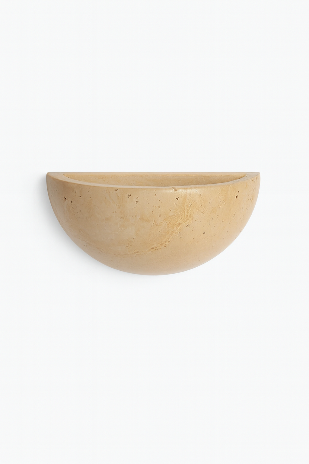 Jej forma przypomina klasyczną misę wykonaną z trawertynu, a powierzchnia ma porowaty, organiczny charakter z drobnymi naturalnymi nierównościami.