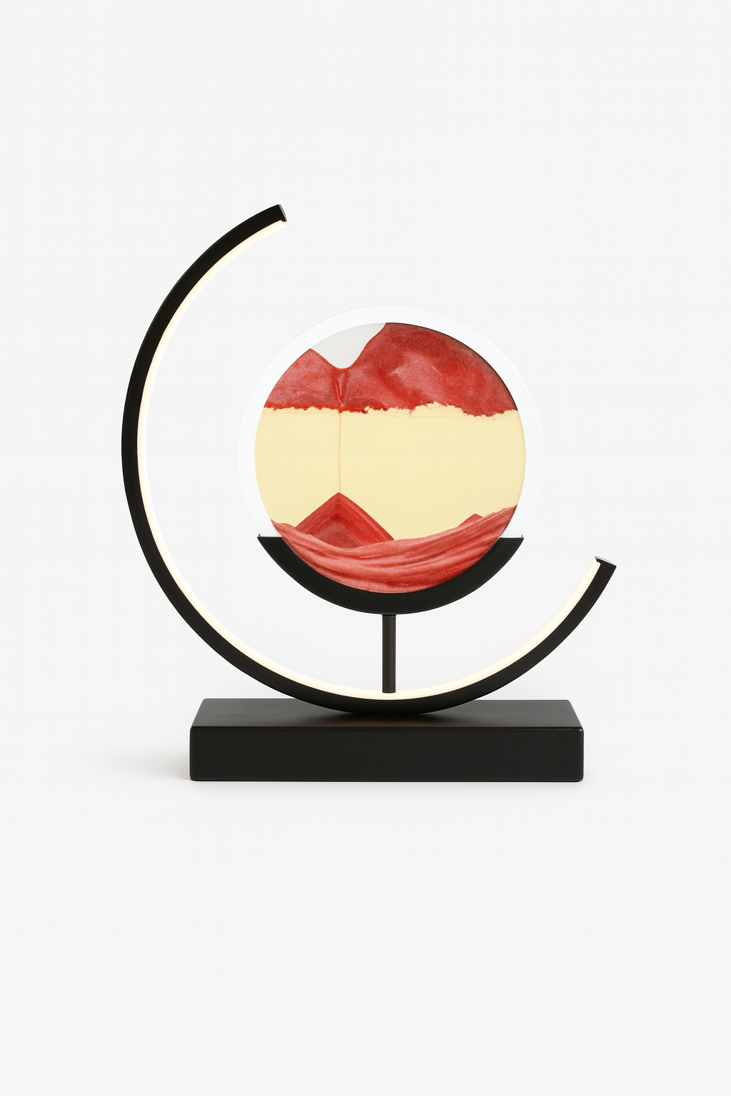 Lampa Soluna łączy ruchome wzory piasku z miękkim światłem LED, tworząc wyjątkową atmosferę relaksu i medytacji.
