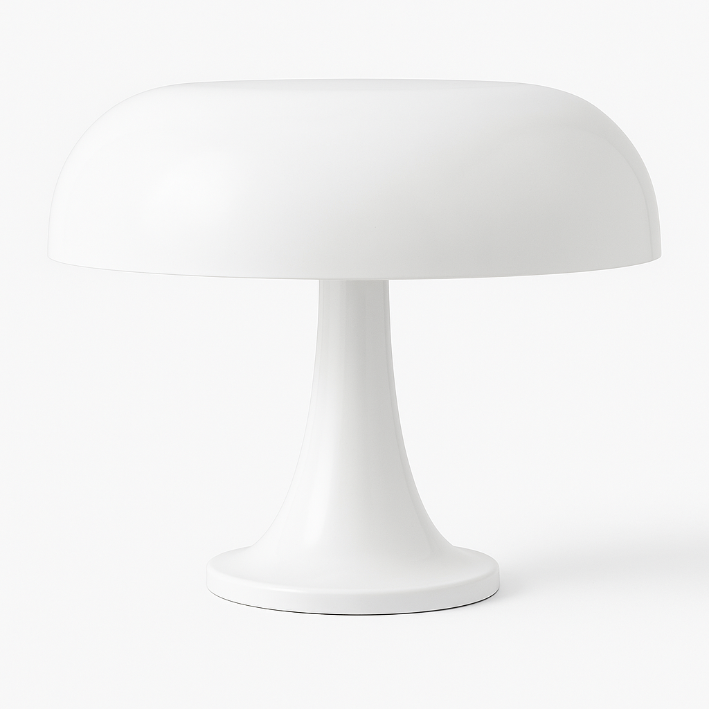 Ta lampa w kształcie grzybka przyciąga wzrok i tworzy przytulną atmosferę.