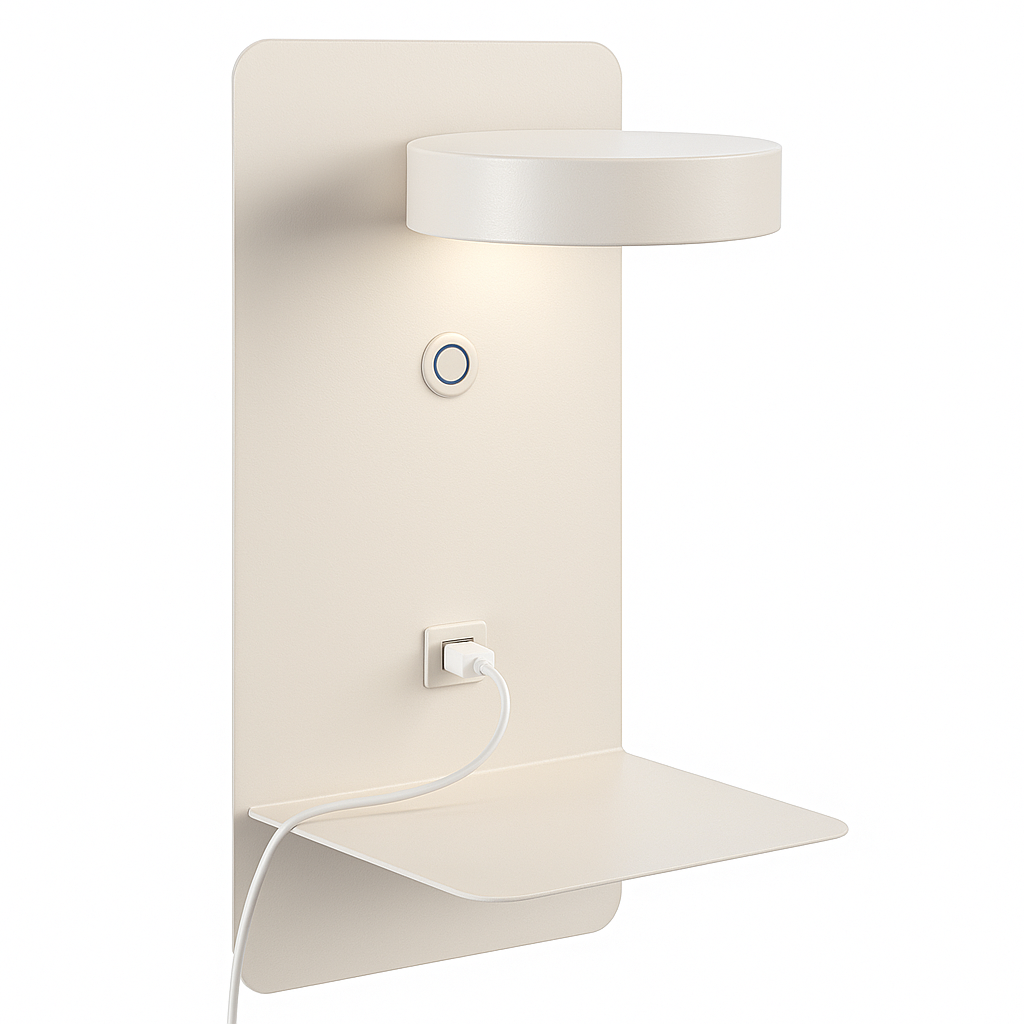 Wskazówka stylizacyjna: Zamontuj przy łóżku – zyskujesz nowoczesną lampkę i miejsce do ładowania w jednym.