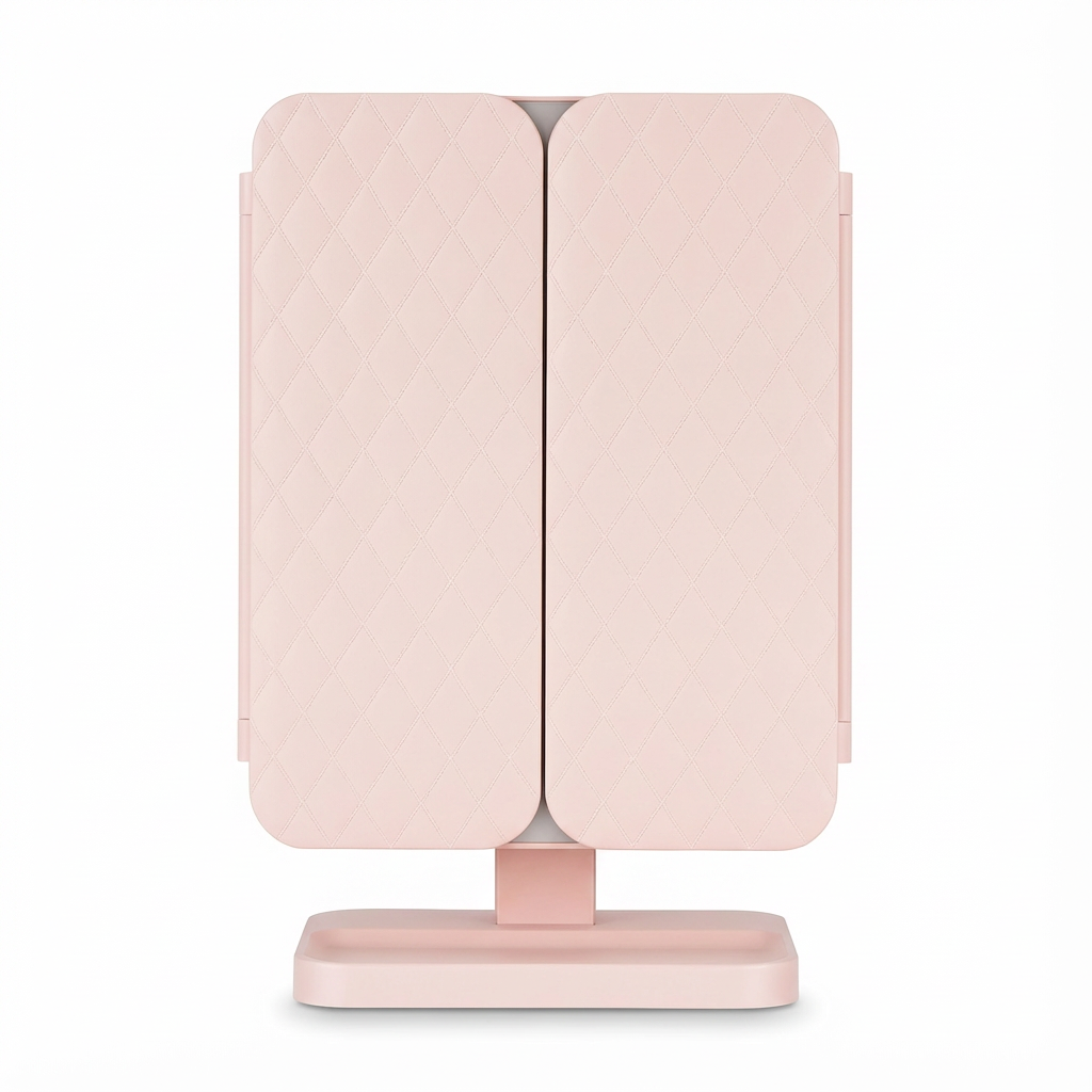 Dzięki trzem trybom światła (ciepłe, chłodne, naturalne) z łatwością dopasujesz oświetlenie do pory dnia i efektu, jaki chcesz osiągnąć. Boczne lusterka z powiększeniem 2x i 3x ułatwiają precyzyjne konturowanie, nakładanie kreski lub pielęgnację skóry. Konstrukcja jest składana i regulowana w zakresie 90°, co czyni ją idealną do małych przestrzeni. Obudowa w stylu pikowanej skóry dodaje elegancji i sprawia, że lusterko jest także stylowym akcentem toaletki.