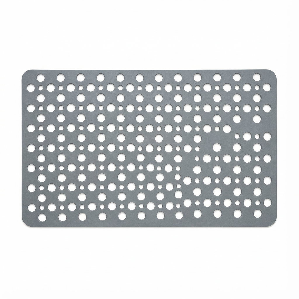 Ułóż matę na marmurowej lub jednolitej posadzce, aby subtelnie kontrastowała z podłożem i wyeksponowała perforowany wzór.
