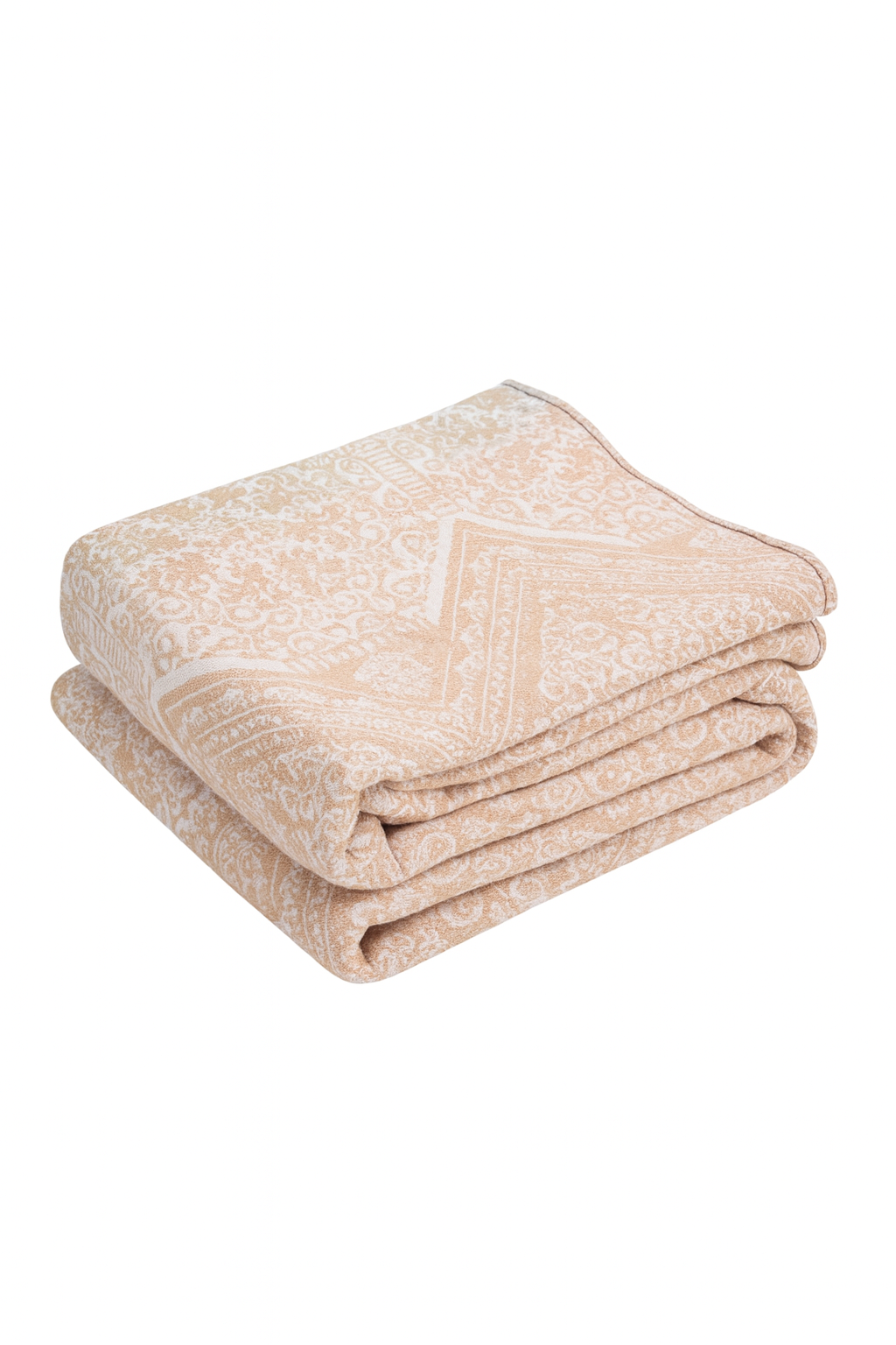 Narzuta Merava łączy naturalną miękkość bawełnianej gazy z kunsztownym wzorem inspirowanym kulturami etnicznymi.