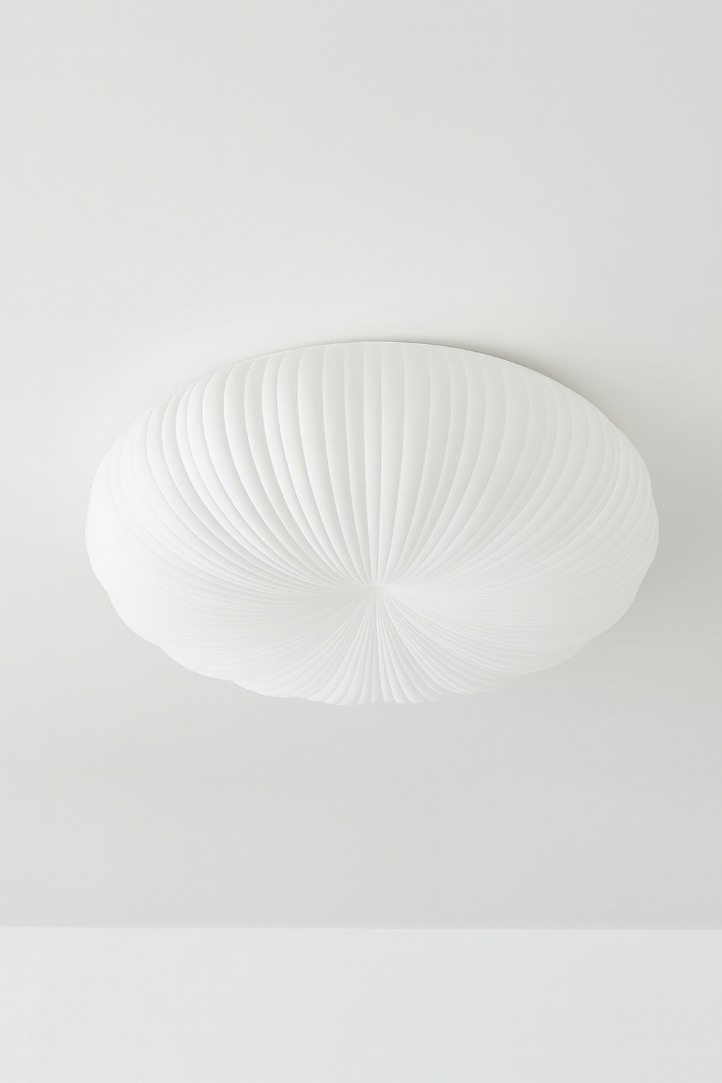 Użyj plafonu Olara w niskim pomieszczeniu zamiast klasycznej lampy wiszącej — jego forma optycznie unosi sufit i tworzy efekt miękkiego rozproszenia światła.