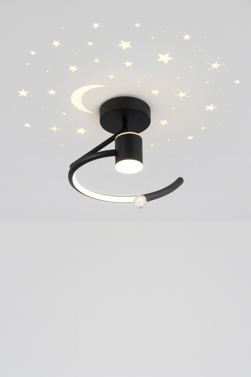Wskazówka stylizacyjna: Zawieś w pokoju z jasnymi ścianami lub sufitem z gładką fakturą, aby wzmocnić efekt świetlnej projekcji.