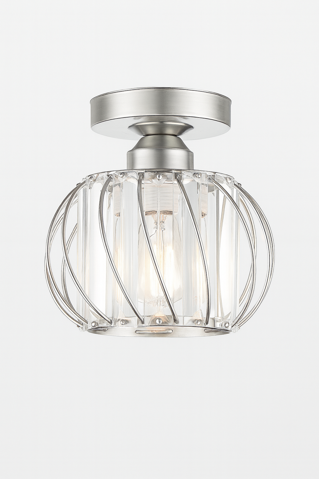 Plafon Valora to dekoracyjna lampa sufitowa o kulistej formie złożonej z pionowych prętów i elementów przypominających kryształowe tafle.