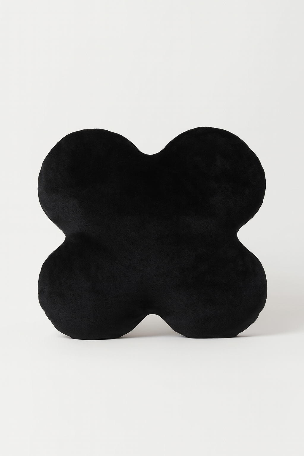 Wykonana z aksamitnego pluszu, poduszka ma organiczny, czteropłatkowy kształt przypominający koniczynę lub nowoczesny obiekt artystyczny. Jej geometryczna, ale miękka linia wprowadza rytm i kontrast w przestrzeniach minimalistycznych lub awangardowych. Może służyć jako siedzisko na podłodze, podparcie lędźwiowe lub nietuzinkowy akcent na sofie czy fotelu.