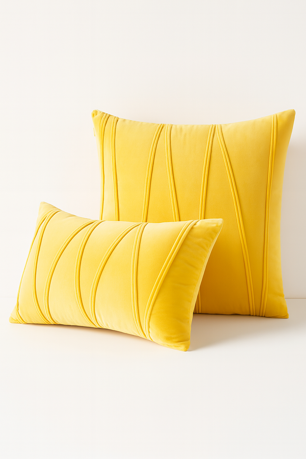 Zestaw dwóch poduszek dekoracyjnych z miękkiego weluru łączy prostotę z elegancją dzięki geometrycznym przeszyciom i wyrazistej fakturze.