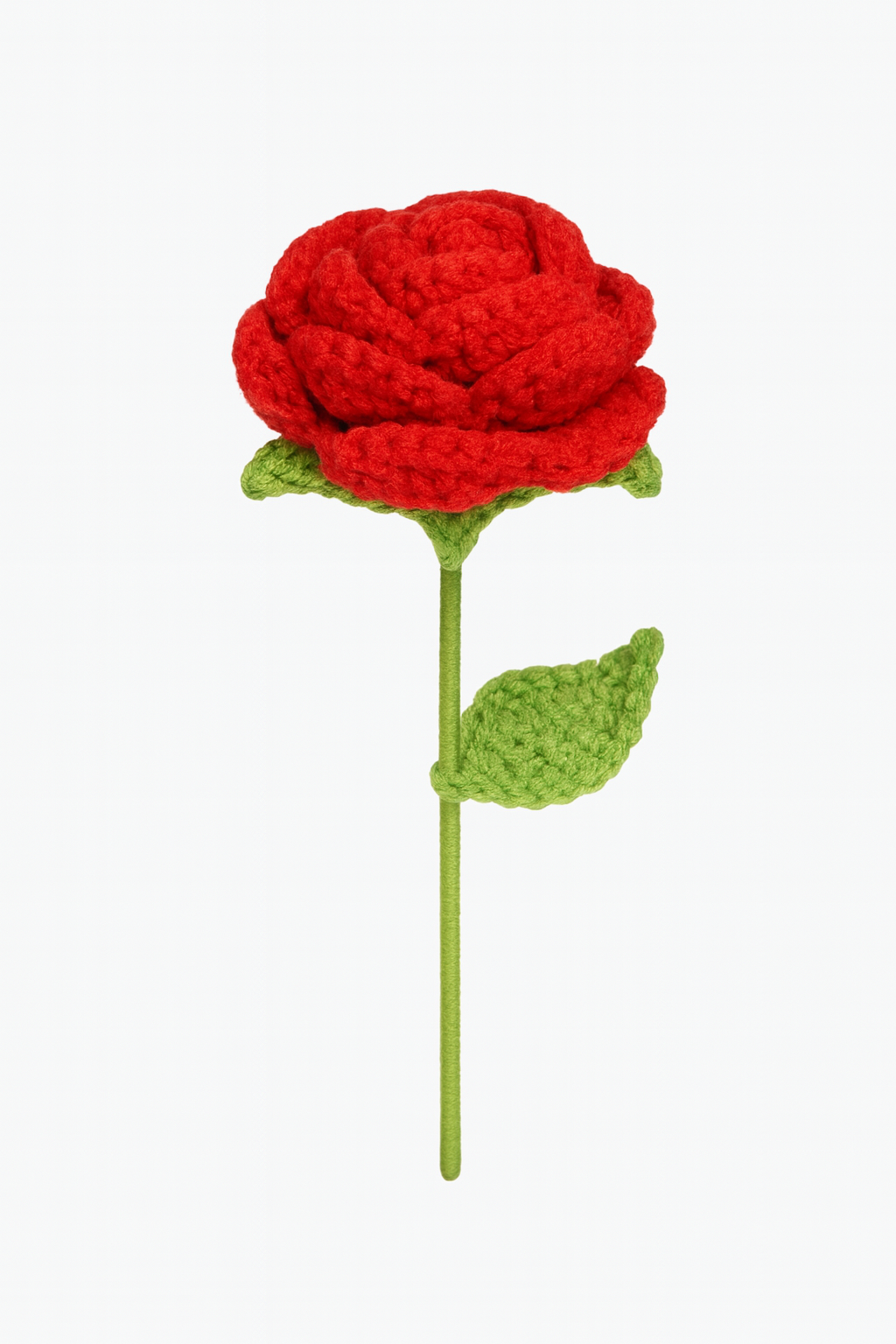 Ta ręcznie wykonana róża szydełkowa to dekoracyjna alternatywa dla klasycznych kwiatów — bez potrzeby pielęgnacji.