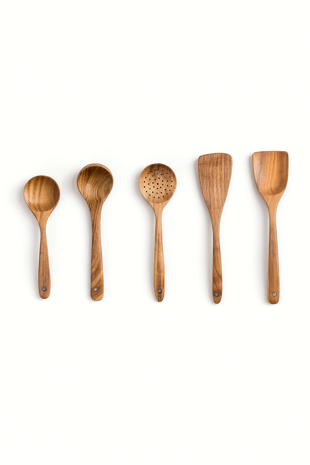 Rusten to zestaw łyżek i łopatek wykonanych z litego drewna, które łączą trwałość z naturalnym pięknem materiału.