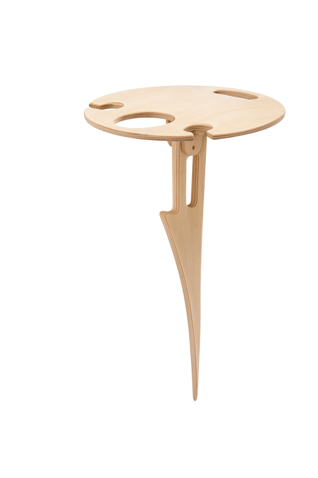 Wystarczy wbić go w trawę, piasek lub miękką ziemię, aby stworzyć elegancką przestrzeń do degustacji wina bez potrzeby stołu.