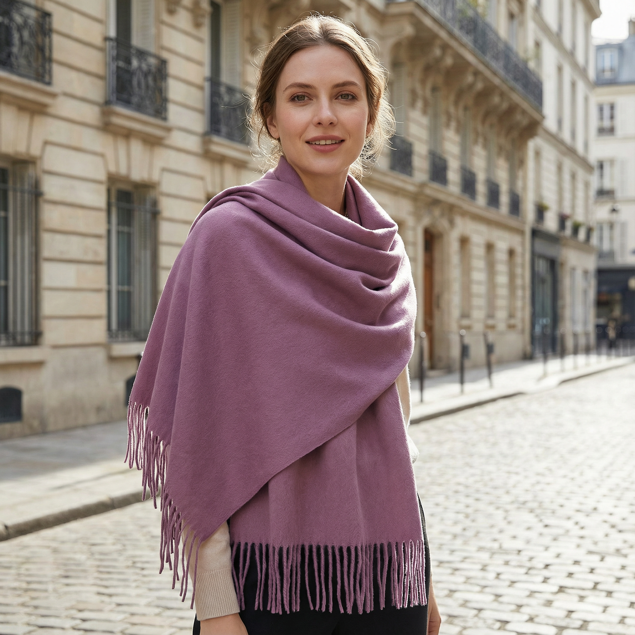 Dzięki swojej długości i szerokości daje wiele możliwości stylizacji — od klasycznego owinięcia po efektowne narzucenie na ramiona. Mięsista tkanina z delikatnymi frędzlami nadaje mu ponadczasowy charakter, który doskonale komponuje się z płaszczami, wełnianymi kurtkami i minimalistycznymi sylwetkami. Szal Krysta świetnie sprawdzi się zarówno w codziennych stylizacjach, jak i bardziej eleganckich wyjściach w sezonie jesienno-zimowym.