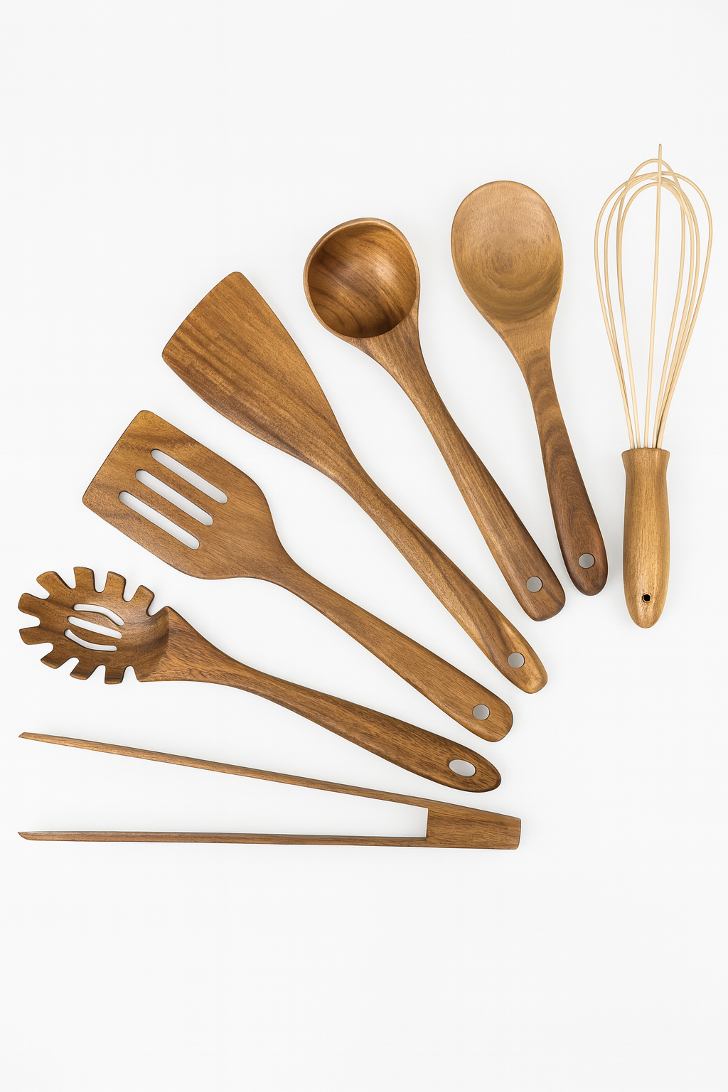 Terrachef to zestaw drewnianych akcesoriów kuchennych, który łączy klasyczne łyżki, łopatki i chochlę z trzepaczką do mieszania. Wykonane z litego drewna elementy są delikatne dla powłok nieprzywierających i odporne na wysoką temperaturę. Dzięki naturalnemu wykończeniu są nie tylko funkcjonalne, ale także estetyczne, nadając kuchni rustykalnego i przytulnego charakteru. Zestaw Terrachef to wszechstronny wybór do gotowania i serwowania posiłków.
