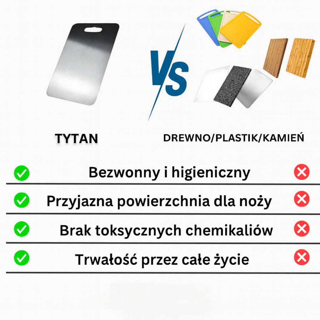 Tizonaa PureCut to deska wykonana w 100% z tytanu – materiału cenionego za trwałość, neutralność bakteryjną i odporność na zapachy.