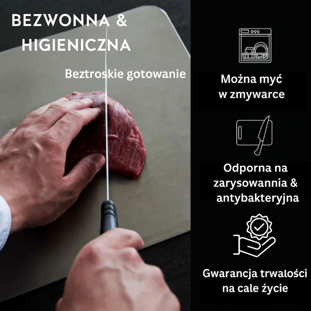 Dzięki wyjątkowej powierzchni nie pochłania wilgoci ani zapachów, a jednocześnie chroni ostrza noży, zachowując ich ostrość na dłużej.
