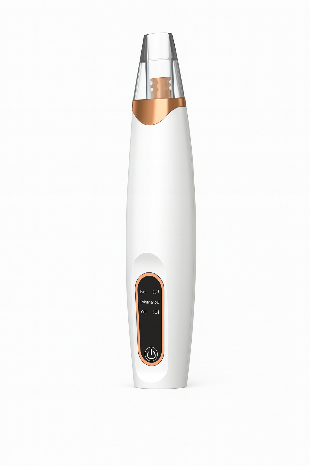 VacuSkin to elektryczne urządzenie pielęgnacyjne do twarzy z funkcją delikatnego zasysania powietrza i wymiennymi końcówkami.