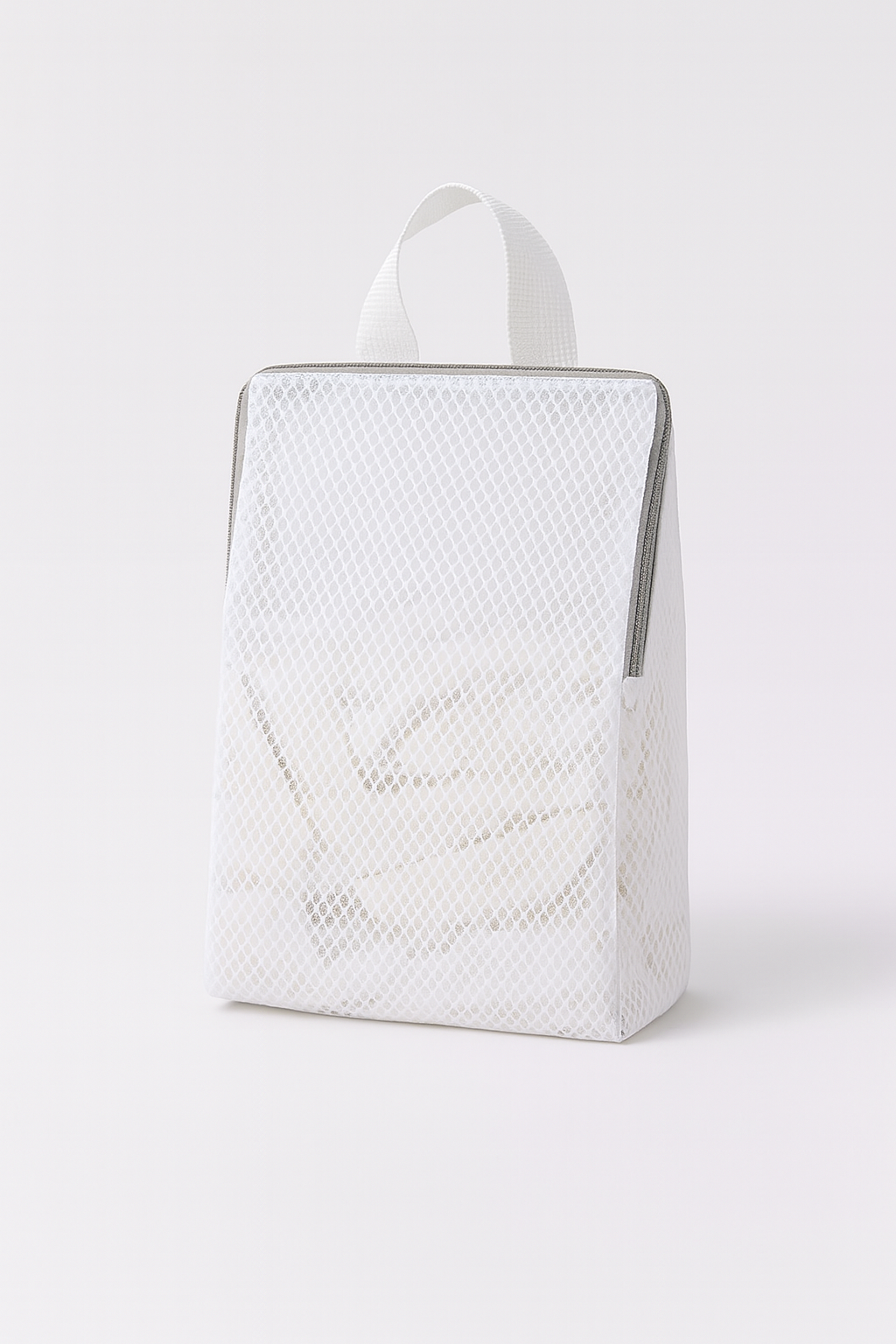 Wykonany z gęsto tkanej, ale przewiewnej siatki poliestrowej, pozwala wodzie i detergentom swobodnie przepływać, jednocześnie chroniąc zawartość przed plątaniem, zaciągnięciami i deformacją. Solidny zamek błyskawiczny z osłoną zabezpiecza inne ubrania przed zahaczeniem. Dostępny w różnych rozmiarach – od S do XL – sprawdzi się zarówno przy praniu bielizny, jak i dziecięcych ubranek czy koszulek sportowych.