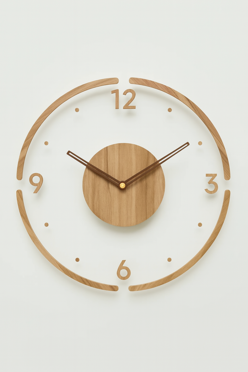 Zegar ścienny Nordora to kwintesencja skandynawskiego minimalizmu, wykonany z ekologicznego drewna klasy E0, wolnego od zanieczyszczeń.