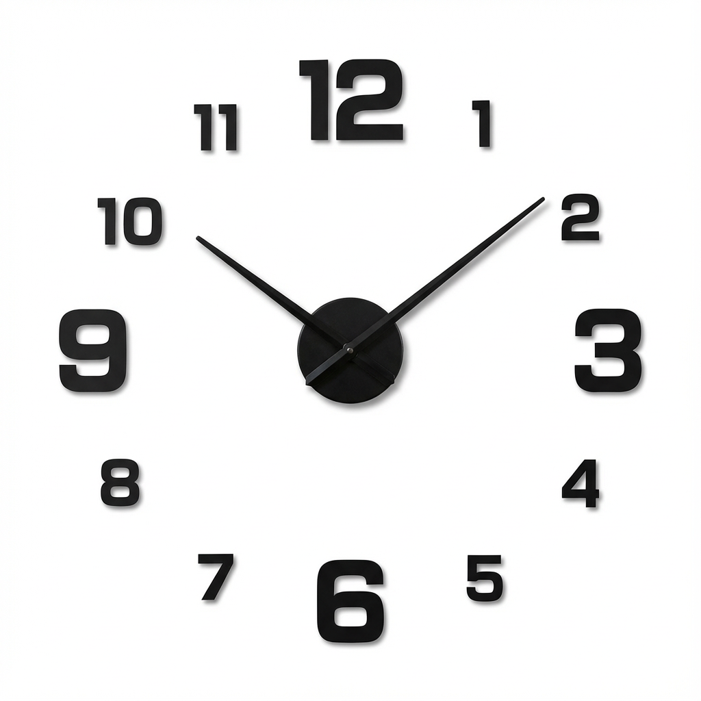 Jego oryginalna forma z dużymi, trójwymiarowymi cyframi tworzy wyrazistą kompozycję na ścianie i idealnie komponuje się z nowoczesnymi, minimalistycznymi lub industrialnymi wnętrzami. Cichy mechanizm bez tykania sprzyja skupieniu i relaksowi – sprawdzi się więc nie tylko w salonie, ale także w biurze lub sypialni. Montaż jest prosty dzięki dołączonym elementom samoprzylepnym, które pozwalają dostosować rozmiar kompozycji do dostępnej przestrzeni.