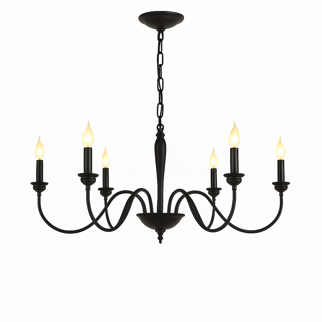 Wykonany z metalu w kolorze matowej czerni, z siedmioma ramionami w kształcie świec – idealny do klasycznych i eklektycznych wnętrz.
